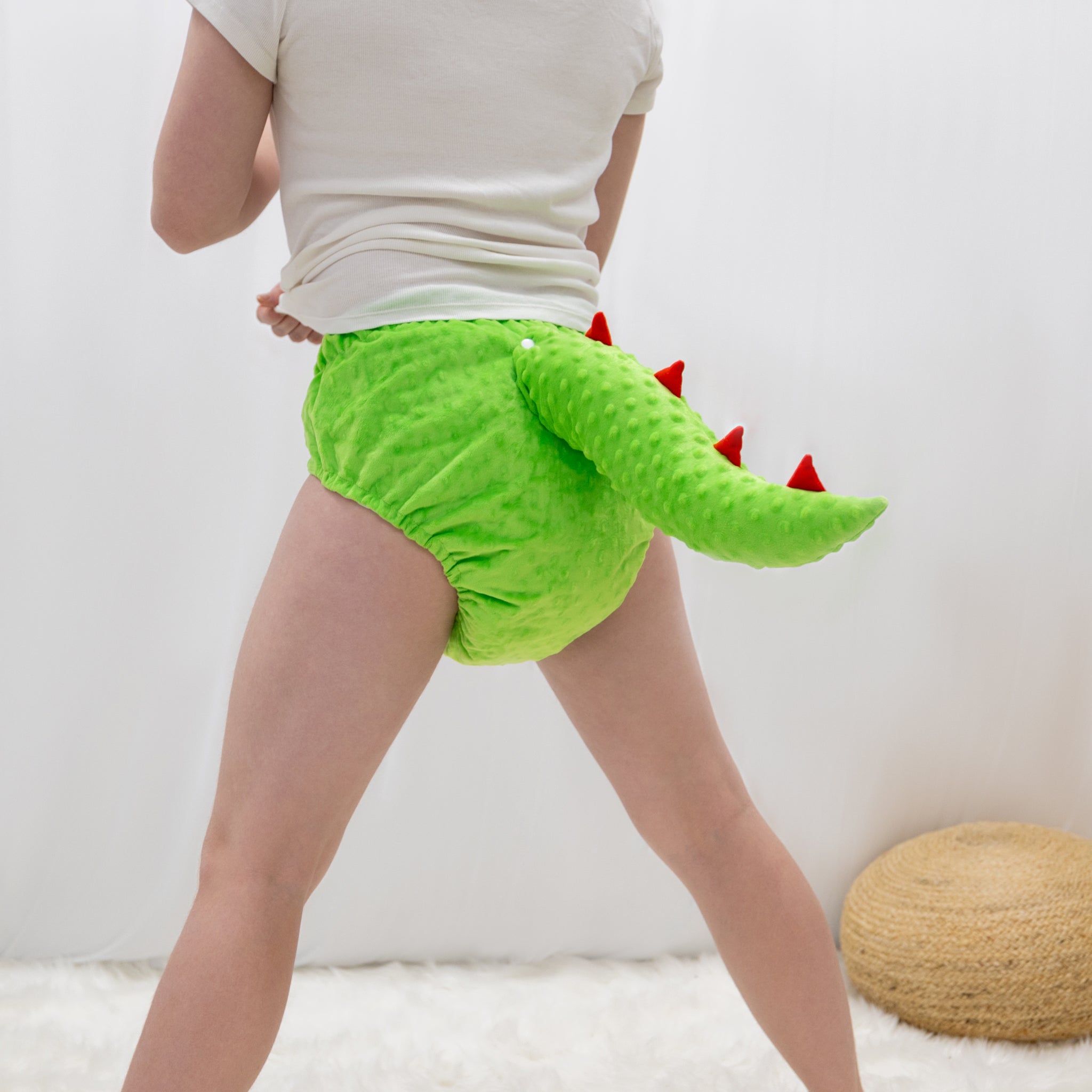Appeal to your little personality with our Dinosaur Tail add-on and adorable Minky Fabric, Hook and Loop adjustable Adult Cloth Diaper. Designed with comfort and side leak-aged prevention in mind. They are soft, comfortable, and easy drying for you or your little one, and also good for the planet!