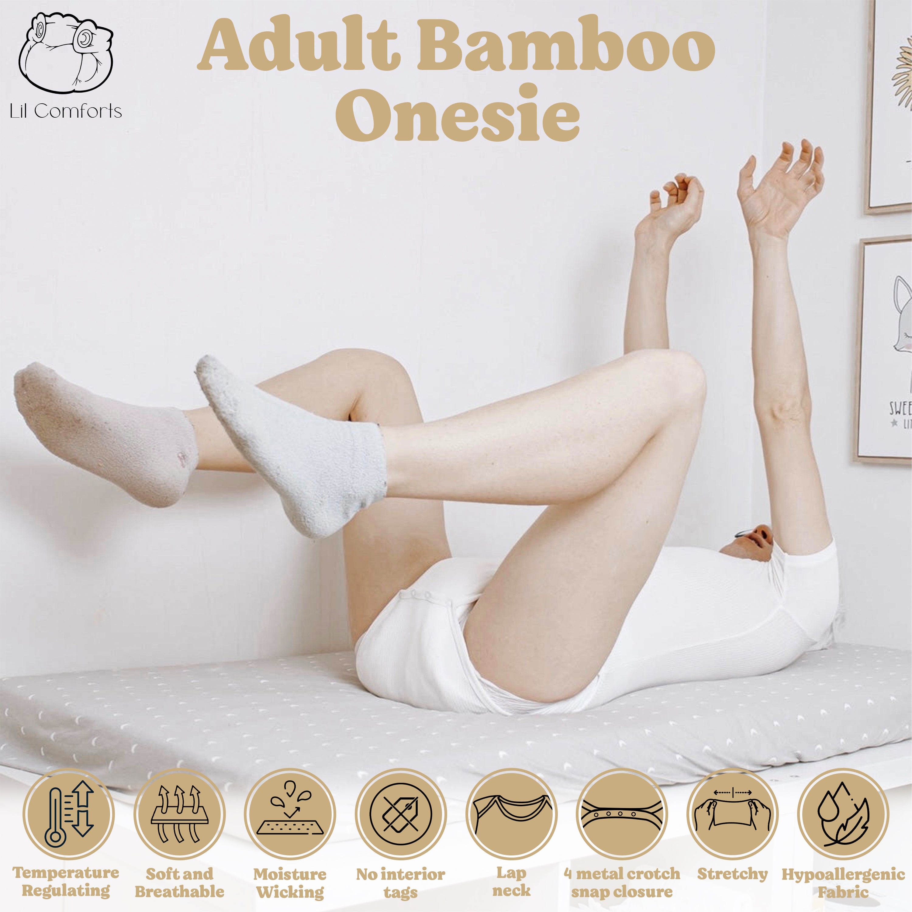 ABDL's, gender neutral apparel; featuring super stretchy, buttery soft and breathable premium Bamboo Viscose fabric. Luxurious and fashionable apparel for little ones like you! Crafted from ultra-soft and breathable interlock fabric, providing superior comfort and warmth. Backed with strong stitching and reinforced buttons for durability, this onesie is a must-have for every little. This adorable onesie is sure to be you or your baby's go-to for all of their crawling, toddling and overall cuteness. Plus, you'll feel good knowing that it's environmentally responsible too!