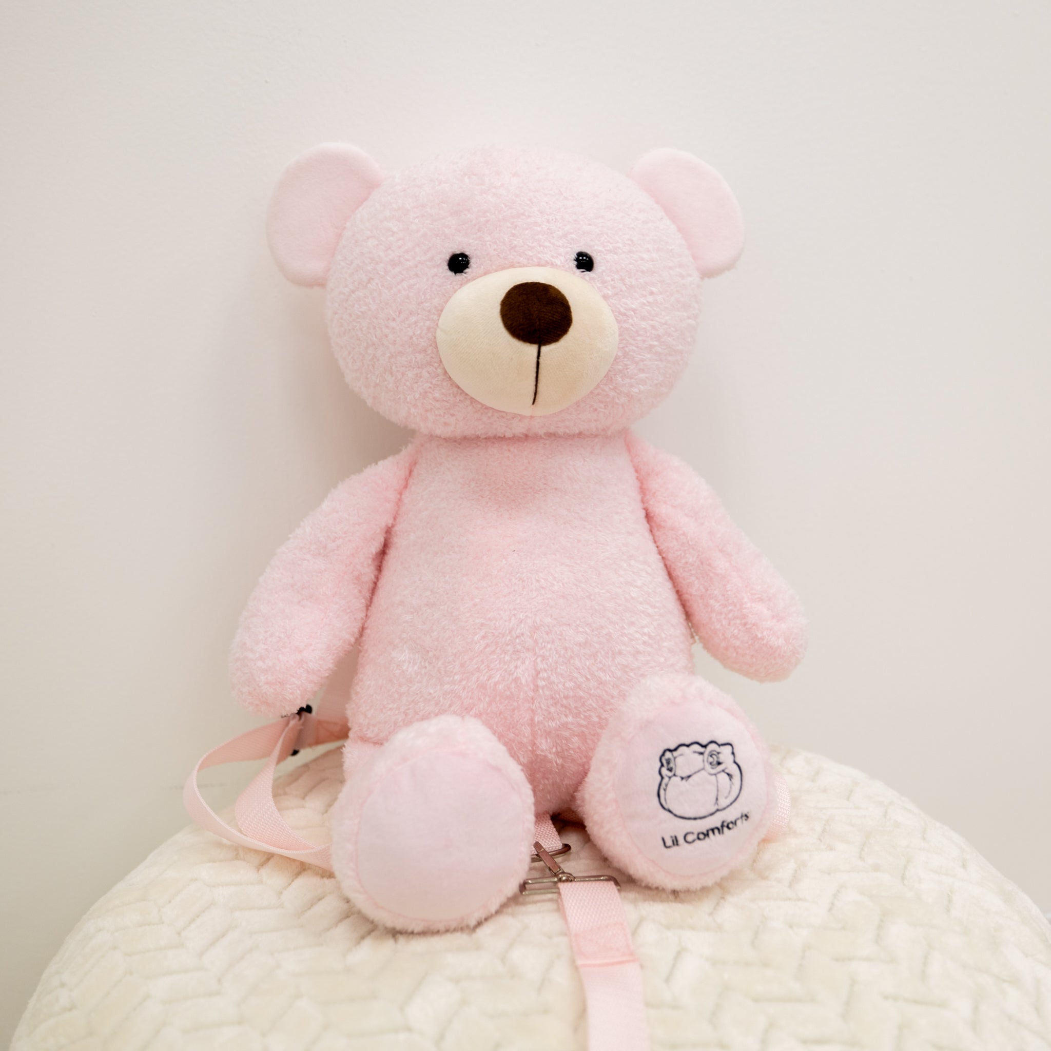 Bear Plush that functions as both a harness and backpack and you can rest easy knowing your little one will stay close-by. Slim and discrete pocket on the Bear’s back for special toys, snacks or other treasures found along the way. Zipper closure keeps everything safe and secure while on the go.