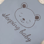 Features a charming sleeping bear face and the phrase "sleeping baby" on the chest area