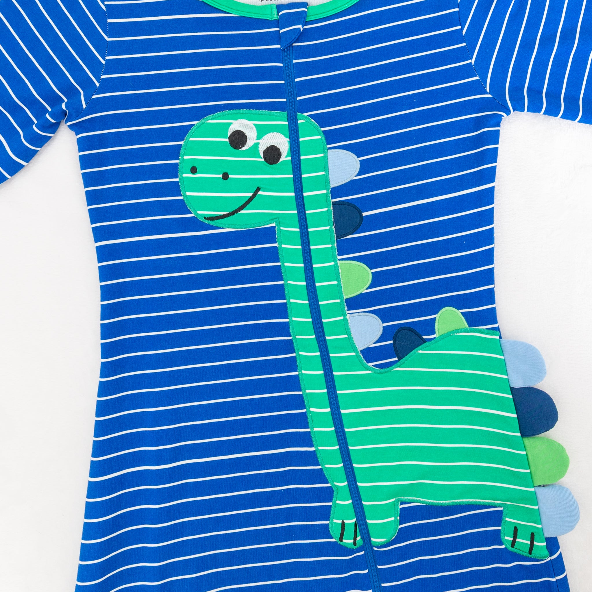 Stripe the Dino- Adult Bamboo Terry Footed Pajamas
