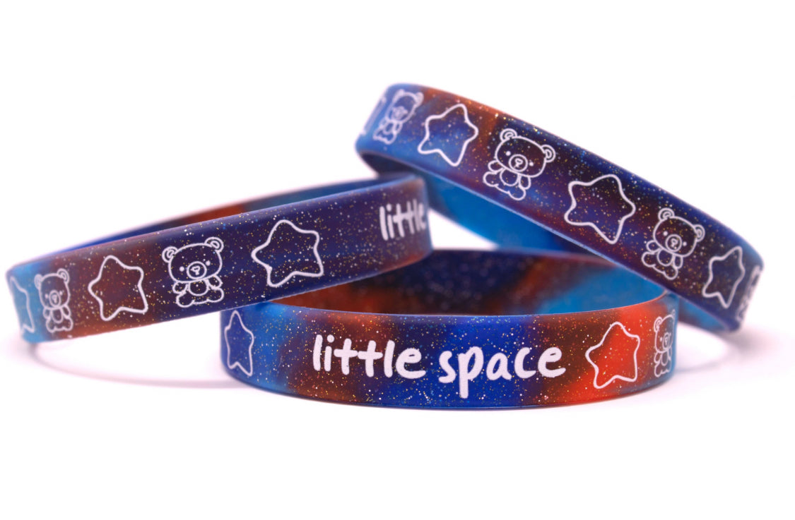 - “Little Space” Wristband with Nebula Blended colors and Glitter. Bears and Stars covering the rest of the Wristband.